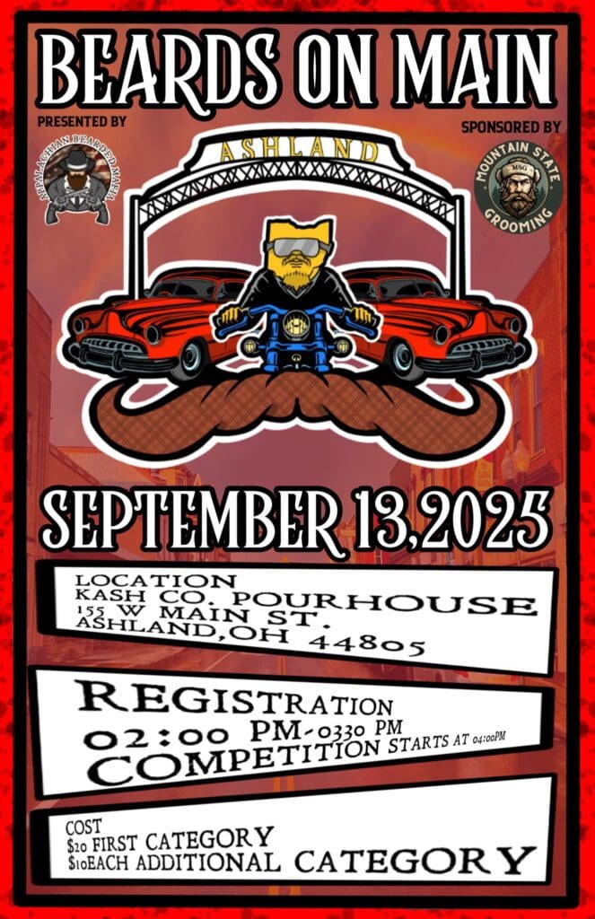 Saturday September 13th the Appalachian Bearded Mafia will be Hosting “Beards on Main” aka… “End of Summer Bash” in Downtown ~ Ashland Ohio, 44805.
